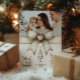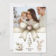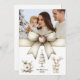 Cette charmante carte de vacances allie des tons doux et neutres à une esthétique rustique. Un grand arc dessiné à la main cravate le design, encadré de branches de sapins enneigés et de détails boisés comme un renne vintage, une tasse de cacao chaude et un sapin de Noël. La palette chaleureuse et feutrée complète votre photo familiale, ce qui en fait un endroit idéal pour les amateurs de superbes paysages hivernaux. Personnalisez le texte pour créer une carte qui se démarque avec une élégance douce.