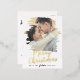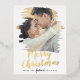 Cette carte photo de fêtes de Noël à enregistrer en feuille métallisée brossée avec une carte postale de vacances en feuille métallisée fait la parfaite salutation simple de vacances pour un couple fiancé. Le design unique et artistique présente votre photo avec des coups de pinceau peints à l'aquarelle et une calligraphie moderne en feuille métallisée pressée luxueuse. Choisissez le texte en feuille métallisée argent, or ou or rose sur le devant.