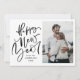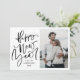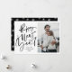 Souhaitez à vos proches un Joyeux Nouvel An en style avec notre carte photo de vacances de Nouvel An Moderne et Lettré à la Main! Le chic carte photo de vacances présente "Bonne année" dans un script noir écrit à la main. Personnalisez la carte en ajoutant votre nom, l'année et votre photo préférée. La carte revient à un motif de flocons de neige noirs et blancs.