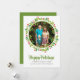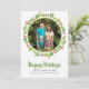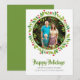 Carte de style plat de Noël à l'élégante blancheur immaculée, avec des graphiques d'une couronne verte feutrée avec des baies rouges et une fente photo personnalisée à l'intérieur. Personnalisez le texte et l'image personnalisés en fonction de vos besoins de vacances.