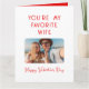 Carte de vœux drôle de photo de la Saint-Valentin Vous êtes ma femme préférée comprend votre photo préférée avec le texte "Vous êtes ma femme préférée, joyeuse Saint-Valentin" en typographie rouge moderne accentuée d'un simple cœur d'amour rouge. Ajoutez votre texte personnalisé pour personnaliser à l'intérieur. Accentué de cœurs d'amour. Cadeau parfait pour votre femme pour la Saint-Valentin. Conçu par © Evco Holidays www.zazzle.com/store/evcoholidays