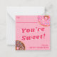 Ce carte photo de classe moderne et sucré de la Saint-Valentin est décoré d'un arrière - plan rose clair avec des illustrations de beignes sur le devant. Le message d'accueil sur le devant dit "Vous êtes doux! avec le nom de votre enfant et l'espace pour écrire dans le nom du destinataire. L'arrière de la carte a une photo carré pleine image, qui peut également être enlevé si désiré. Cette petite taille est parfaite pour les échanges en salle de classe Valentine !