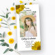 Invités Invitations pour célébrer l'accomplissement de votre lycée ou de votre étudiant de collège avec le joli Carte photo d'invitation de la fête de tournesol jaune. Personnalisez-le avec le nom de la jeune diplômée, l'image de la classe supérieure et les détails spécifiques de votre événement. Cette jolie carte invitation florale sur mesure présente des tournesols jaunes ornant les coins d'un arrière - plan blanc.