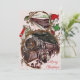 Carte de Noël vintage avec une scène de personnes montant dans un train à Noël sur le devant. Vos photos personnalisées et votre message personnalisé au dos.