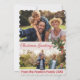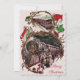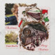 Carte de Noël vintage avec une scène de personnes montant dans un train à Noël sur le devant. Vos photos personnalisées et votre message personnalisé au dos.