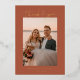 Carte de remerciements de mariage minimaliste et élégant avec écriture manuscrite avec coeur. Vous pouvez ajouter une photo à l'avant et à l'arrière avec votre message. La couleur arrière - plan est la terre cuite.