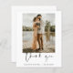 Faites preuve de gratitude avec nos élégantes cartes de remerciement avec un script moderne et votre photo mariage préférée. Ces cartes offrent un design élégant et minimaliste qui complète parfaitement toute esthétique mariage. Personnalisez-les avec un message sincère d'appréciation pour transmettre vos remerciements à vos amis et à votre famille pour leur amour et leur soutien. Conçues avec des matériaux de haute qualité, ces cartes offrent un moyen élégant et sophistiqué d'express votre gratitude. Que vous remerciiez les invités pour leur présence ou leurs cadeaux, nos Cartes de Remerciements pour Mariage Photo Modern Script Simple ajoutent une touche personnelle à vos remerciements. Avec leurs lignes épurées et leur charme contemporain, ils créent une impression durable qui reflète la beauté de votre journée spéciale. Partagez votre gratitude dans le style avec notre Mariage photo Modern Script Simple Merci Cartes, et laissez votre appréciation briller avec chaque mot.