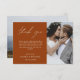 Cartes de Merci mariage qui ont une photo à l'avant et à l'arrière. Les cartes de remerciement contiennent une typographie de script moderne, lettrée à la main, qui sont élégantes, simples et modernes à utiliser après la célébration du mariage.