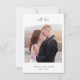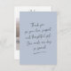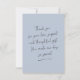 Un message spécial d'amour et de remerciement pour vos invités. Dispose d'un message manuscrit en style script sur un arrière - plan bleu poussiéreux. Le dos est mis en évidence avec votre photo mariage, sentiment, nom et date.