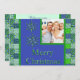 Carte photo de Noël à carreaux vert et bleu