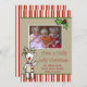 Carte de Noël plate amusante faite en bronze, avec un motif rayé rouge et blanc, en haut et en bas, de la carte. Une zone de photo découpée sur mesure, au centre, est décorée de gribouillis comme des dessins d'une branche de saint et d'un renne mignon. Le texte blanc rouge et vert dit : "Ayez un joyeux Noël Jolly". Le texte rouge sous le salut de vacances est prêt à personnaliser. Carte photo de vacances pour la famille.