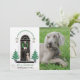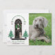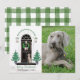Avec un Weimaraner doux portant une cravate d'arc rose! Un porche avant classique décoré pour les vacances, avec des arbres de Noël aux étoiles flanquant l'élégante porte noire, une couronne de pin à en vichy arc rose, et des lanternes surmontées de roses et de saints. Dans le style de Magnolia| ferme moderne| classique élégant. 3 COULEURS DE PLAIDE POUR LE DOS SONT DANS LE DESIGN (vert foncé comme illustré, noir, ou rose - il suffit de modifier et de cacher les images plaid que vous ne voulez pas). Ajoutez votre propre portrait de famille pour un accueil de vacances personnel!