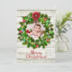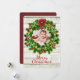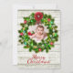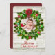 Une carte d'arrière - plan rustique gris / marron patiné en bois avec une belle couronne verte décorée est parfaite pour ajouter une photo de votre famille. Envoyez ce Joyeux carte photo de Noël à toute votre famille et vos amis.