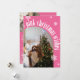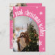 Célébrez la saison avec notre Carte photo de Parties scintillant de Noël Pink Retro ! Doté d'un design photo familial avec un arrière - plan festif de flocon blanc, une police rétro et un message de parties scintillant personnalisé au dos, cette carte ajoute une touche de brillant et de charme à vos salutations de vacances. Parfait pour envoyer des souhaits chaleureux style