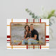 Partagez vos vœux les plus chaleureux de la saison avec la carte photo de paysage à carreaux de Noël moderne, qui fait partie de la chic collection de Noël à carreaux. Le design présente un motif à carreaux audacieux et surdimensionné dans des nuances de jaune doré, de vert sauge, de rouge canneberge et de vert foncé sur un fond blanc croustillant, créant un look festif et pourtant moderne qui semble intemporel. Un espace photo personnalisable occupe le centre de la scène, encadré par une bordure dorée sophistiquée, faisant briller votre photo de famille. En haut, un texte modifiable indique "Joyeux Noël", mais peut être personnalisé selon le vœu que vous préférez, tandis que l'espace ci-dessous est parfait pour ajouter le nom de votre famille et l'année. Au verso, vous pouvez laisser le design vierge pour une finition propre ou le personnaliser avec votre propre message de Noël.