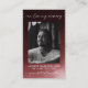 Carte de prière funéraire rouge foncé. Ajoutez votre photo préférée, script, et typographie classique est utilisé. Au verso de la carte se trouve la prière qui peut être customisée.