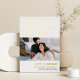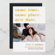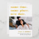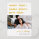 Vous avez besoin de reporter ou de reprogrammer votre mariage ? Faites-le savoir avec ces cartes modernes et lumineuses en blanc avec de luxueuses feuilles d'or. Le design basé sur la typographie est amusant et intelligent, avec en haut "la même heure, le même endroit, la nouvelle date" avec votre nouvelle date de mariage et des détails en dessous. Customisez avec une photo et ajoutez des détails supplémentaires au dos.
