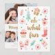 Un design de carte de Noël à plusieurs photos avec le message, Oh Quelle Amusement. Il est décoré de jolies illustrations de cadeaux, de mitaines, d'une chaussette de Noël et d'un sapin de Noël. Personnalisez-le avec votre photo de famille, votre nom de famille et un message de vacances. Conçu pour vous par Blackberry Boulevard.