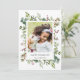 Envoyez un accueil de vacances à votre famille et à vos amis. Cette carte de vacances présente des baies peintes d'aquarelle rouge, des branches de pins, des eucalyptus et des feuilles verts avec les mots "Joyeuses fêtes". Customisez ceci en changeant l'image avec votre propre photo et texte.