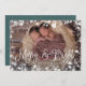 Simple et chic, la carte photo de vacances dispose de votre photo de famille préférée, recouverte d'une bordure de livre blanc qui évoque l'aspect d'une fenêtre glacée. "Merry & Bright" apparaît le long du bas dans les lettres de script blanc moderne. Personnalisez avec votre nom de famille et l'année nichée dans le design. Les cartes renversent vers un motif de vignes subtil en vert d'épinette.
