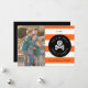 Un crâne festif et des os croisés avec "farce ou friandise joyeux halloween" autour sur un fond rayé orange et blanc. Votre photo à gauche. Ajoutez votre propre texte ou photos au verso pour une invitation de fête d'Halloween ou une carte de remerciement d'octobre. Photo par Photographie © Storytree Studios, Stanford, CA. Veuillez me contacter pour toute question ou demande spéciale. Merci de votre visite !
