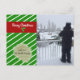 Un design lumineux avec un arrière - plan de rayures diagonales vertes et blanches. Une bannière rouge dit Joyeux Noël avec un petit morceau de baies sainte en dessous. Une nuance de couleur dorée accentue les noms. Ajoutez votre photo pour la personnaliser.