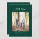 Cette carte de vacances verticale en une photo comprend un monogramme bien en vue entouré de branches festives rustiques et l'année et un lieu pour un accueil personnalisé. La couleur arrière - plan verte classique est bien coordonnée avec de nombreuses photos de famille, mais elle peut être modifiée en cliquant sur "personnaliser".