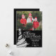 Un carte photo de vacances moderne avec un sapin de Noël argenté surmonté d'une étoile sur un arrière - plan noir. Cette carte de Noël élégante est parfaite pour une famille ou un travail. Personnalisez facilement votre photo et votre texte! Autres couleurs disponibles. Les dessins sont des illustrations/graphiques imprimés à plat - PAS VRAIMENT FOIL D'ARGENT.