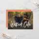 Partagez une photo de vos petits costumes d'Halloween avec notre adorable carte photo Wicked Cute. Le design présente votre photo horizontale avec "mignonne méchante" en bas dans des lettres manuscrites modernes en blanc. Personnalisez avec votre salutation personnalisée, nom(s) et année en dessous.