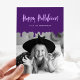 Envoyez des salutations éffrayantes pour Halloween avec ce carte photo étrange avec "Happy Halloween" en clair violet lettrage à la main. Le dessus de la conception affiche un "sang" violet moucheté sur votre photo personnalisée pour une touche déplaisante inspirée de l'horreur. Ajoutez votre nom à l'avant pour une finition personnalisée. Le dos de la carte montre un arrière - plan violet assorti, en attachant le look ensemble pour un courrier saisonnier effrayant.