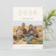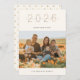 Moderne et élégant doré "2026", carte photo du Nouvel An. Design minimaliste avec une seule photo. Arrière des caractéristiques de la carte, pois doré motif point sur blanc.