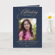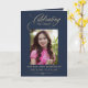Carte Photo Elegant Blue Gold Funeral Keepsake Program