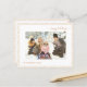 Carte de vacances élégante et simple avec photo à personnaliser sur le devant avec un motif doré faux, et une deuxième photo au dos avec un texte élégant pour inclure vos noms et dates. C'est la carte de vacances festive parfaite à envoyer à votre famille et à vos amis.