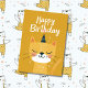 Ceci est une illustration d'un chat jaune mignon sur fond jaune, carte d'anniversaire pour les amoureux des chats. À l'intérieur de la carte, vous pouvez la personnaliser avec la photo et le nom d'un enfant.