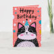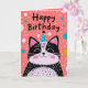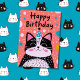 Ceci est une carte d'anniversaire avec une illustration d'art de chat noir mignon pour les amateurs de chats. À l'intérieur de la carte, vous pouvez la personnaliser avec la photo et le nom d'un enfant.