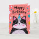 Ceci est une illustration de carte d'anniversaire d'art de chat noir mignon pour les amateurs de chats. À l'intérieur de la carte, vous pouvez la personnaliser avec la photo et le nom d'un enfant.