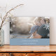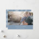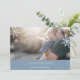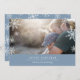 Moderne, simple et minimaliste, le carte photo de vacances dispose de votre photo horizontale ou paysagère préférée avec une épaisse bordure de fond bleu. Votre salutation personnalisée apparaît en lettres blanches modernes (illustrées par "Joyous Hanoukka"), avec votre nom de famille ou vos noms en-dessous. Un subtil motif de flocon de neige est superposé sur les bords de votre photo pour vous séduire. Les cartes retournent à un motif de flocon de neige en bleu et blanc moyen poussiéreux assortis.