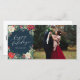 Célébrez la saison avec un carte photo de vacances customisé! Ce design est composé d'une mosaïque de couleurs marine foncée et de vacances avec des fleurs d'aquarelle, des baies et des branches.