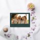 Envoyez vos vœux chaleureux avec cette élégante carte de vœux de fin d'année présentant un fond vert foncé et un texte en relief doré qui dit « Joyeuses Fêtes ». La mise en page épurée et moderne met en valeur votre photo de famille préférée tout en ajoutant une touche de sophistication festive. Personnalisez-la avec le nom de votre famille et l'année pour un message saisonnier raffiné. Parfaite pour Noël, le Nouvel An ou des vœux de fin d'année en général, ce design polyvalent allie minimalisme moderne et élégance intemporelle.