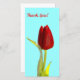 Carte photo Merci. Tulipe rouge sur arrière - plan bleu clair.