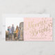 Customisez ce carte photo de voeux de Noël horizontal moderne, élégant et joli, conçu avec un texte en faux or Joyeux et brillant avec des confettis sur un arrière - plan rose vif moderne. Veuillez noter que l'or est une empreinte couleur et n'est pas une feuille d'or réelle. Remplacez les images modèles par votre photo verticale préférée et changez toutes les informations du modèle. Pour de meilleurs résultats, utilisez des images haute résolution. *Crédit Modèle photo : Photographie © Storytree Studios, Stanford, CA Matching Postage Stamps peut être trouvé ici :