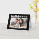 Joyeux Halloween ! Envoyez des salutations Halloween à votre famille et à vos amis avec cette carte Halloween personnalisable. Il présente une typographie rétro et audacieuse et un accent citrouille. Personnalisez en ajoutant vos détails. Cette carte Halloween photo personnalisée est disponible en d'autres couleurs. Des éléments correspondants sont disponibles.