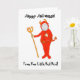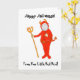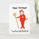 Un carte photo de Halloween d'amusement pour que vous customisiez, avec un petit diable rouge, d'une illustration peinte à la main par Judy Adamson.