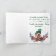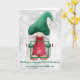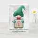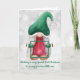 Une belle carte de Noël avec une photo et un gnome aquarelle avec un casquette vert. A l'intérieur de la carte se trouve un message de Noël