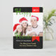 Cette carte de vœux de Noël à plat avec la nouvelle adresse présente votre photo comme point central. Votre photo est entourée d'un petit cadre doré et d'un fond de tableau noir. Un ruban rouge court le long du côté droit avec l'année imprimée en haut du ruban. Les mots "Joyeuses Fêtes" apparaissent en partie sur votre photo et sur le design du tableau noir. Les mots "depuis notre nouvelle maison" apparaissent en dessous, ainsi que le nom de votre famille et le nom de chaque personne individuellement. Le verso de la carte de nouvelle adresse comporte votre nouvelle adresse. C'est une façon amusante de faire savoir à tout le monde votre nouvelle adresse et cela fait une excellente annonce de déménagement pendant cette période des fêtes. Copyright henishouseofpaper