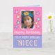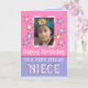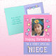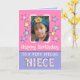 Joyeux anniversaire à une nièce très spéciale. Ajoutez une photo et un message. Carte de voeux rose, violet / multicolore avec étoiles.