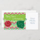 Conception de modèle où vous pouvez customiser la salutation, la fermeture et le nom de famille sur cette carte rouge et verte de style de zigzag (une nouvelle rotation sur la rayure de style de Chevron). Les ornements et les menthes poivrées s'ajoutent à la festivité !