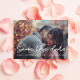 Enregistrez la date : partagez la joie de votre amour et de vos fiançailles avec cette simple carte photo d'enregistrement de la date personnalisée. Message entièrement personnalisable et couleur du texte.