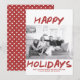 Célébrez la saison avec ce Carte photo de Vacances Happy de Bourgogne, parfait pour partager des salutations de Noël chaleureuses. Cette carte présente une typographie moderne et un design branché avec un message "Happy Holidays" et votre nom de famille. Elle vous propose un ensemble de photos de famille chéri sur un thème épuré et minimaliste. La disposition simple renforce l’attrait du carte photo de vacances, créant une esthétique élégante et accueillante. Conçue avec une impression de haute qualité, cette carte garantit des couleurs vives et des détails nets. Personnalisez avec votre photo de famille, votre nom et votre message de vacances personnalisé pour créer un souvenir tendance et mémorable pour vos proches! Photographie © Storytree Studios, Stanford, CA