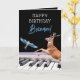 Un piano dressé contre un simple arrière - plan, avec un cerf et un oiseau se rassemblent pour célébrer la mélodie d'un joyeux anniversaire.